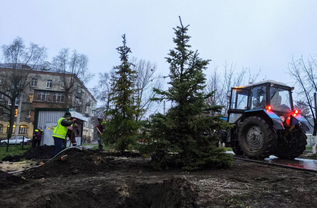 «У Новобаварському районі Харкова співробітники філії «Благоустрій» КП «Шляхрембуд» висадили ялини заввишки 3 та 5 метрів. Символи прийдешніх новорічних свят з’явилися на прибудинковій території біля дитячого майданчика», – йдеться в офіційному повідомленні.