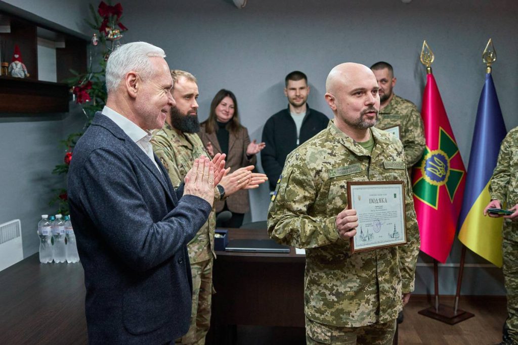 Терехов вручив прикордонникам відзнаки Харківського міського голови – нагрудні знаки «За заслуги перед містом-героєм України Харків» ІІІ ступеня, медалі «За оборону міста-героя Харків», цінні подарунки, почесні грамоти виконкому міської ради та подяки міського голови.