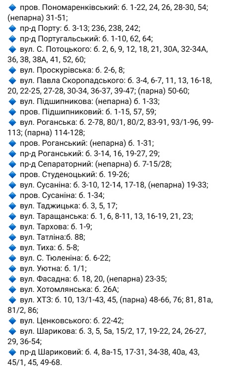 Без світла залишиться один із районів Харкова в суботу: адреси