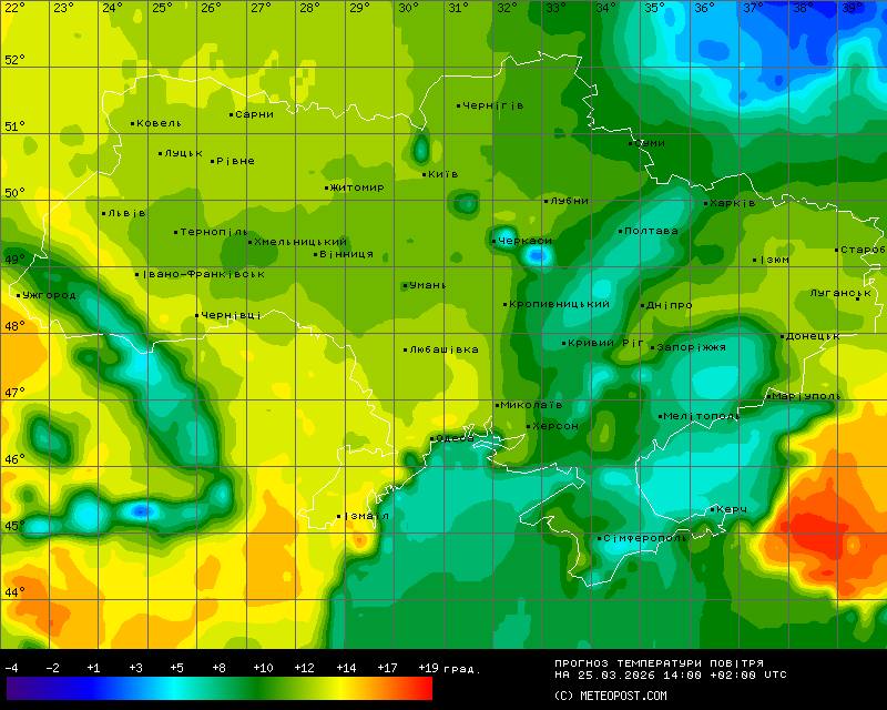 “Але цікава смужка холоду витягнеться від Полтавщини-Харківщини через Кропивницький аж до Криму, вздовж неї – +7- +11 градусів. Опади в більшості областей завтра малоймовірні, лише на південному сході України пройде невеликий дощ. Тепла погода переважатиме кілька днів. Проте ані шапки, ані середні пуховички не ховайте далеко, бо з 31 березня-1 квітня в Україну прийде похолодання. Цілком логічне, якраз перед Вербною неділею”, – попереждає Діденко.
