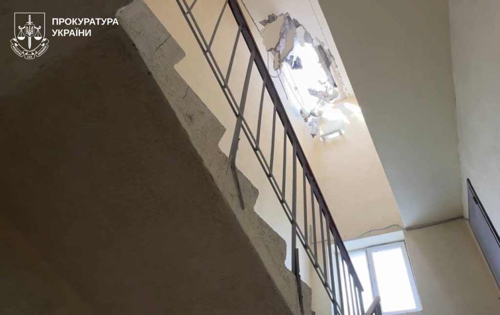 «6 квітня близько 13:50 ворожий безпілотник влучив у дах житлового багатоквартирного будинку. Унаслідок атаки двох чоловіків поранено, ще троє жінок зазнали гострого шоку. Пошкоджено будинок та припарковані поряд автомобілі», – зазначили правоохоронці.