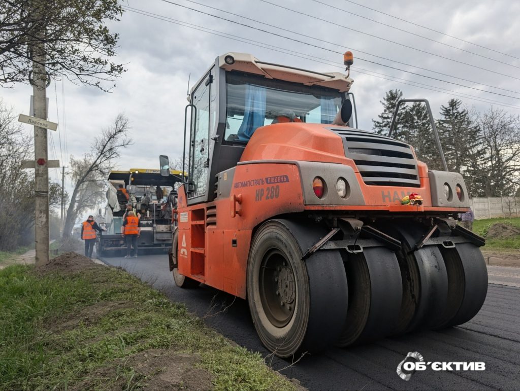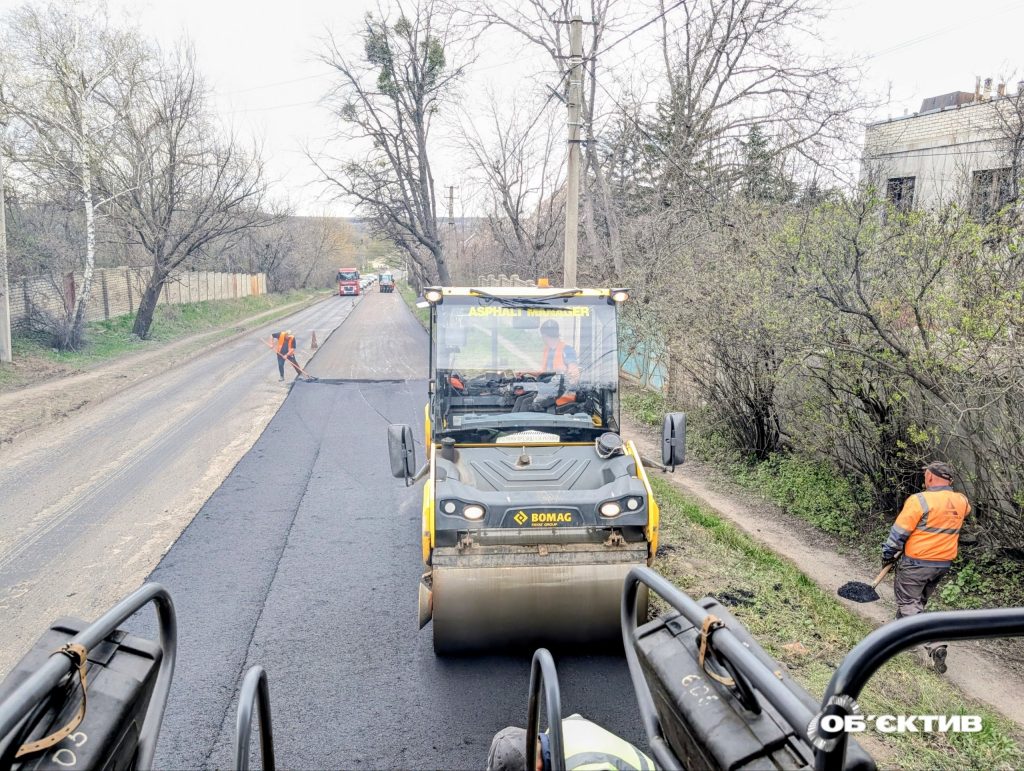 Увесь асфальтобетон, який використовує підрядник, — місцевий, із Дергачівського асфальтобетонного заводу. “Цей завод стоїть з 2018 року, він італійський – Marini, дуже гарний завод, плюс він екологічно чистий”, — зазначив бригадир.