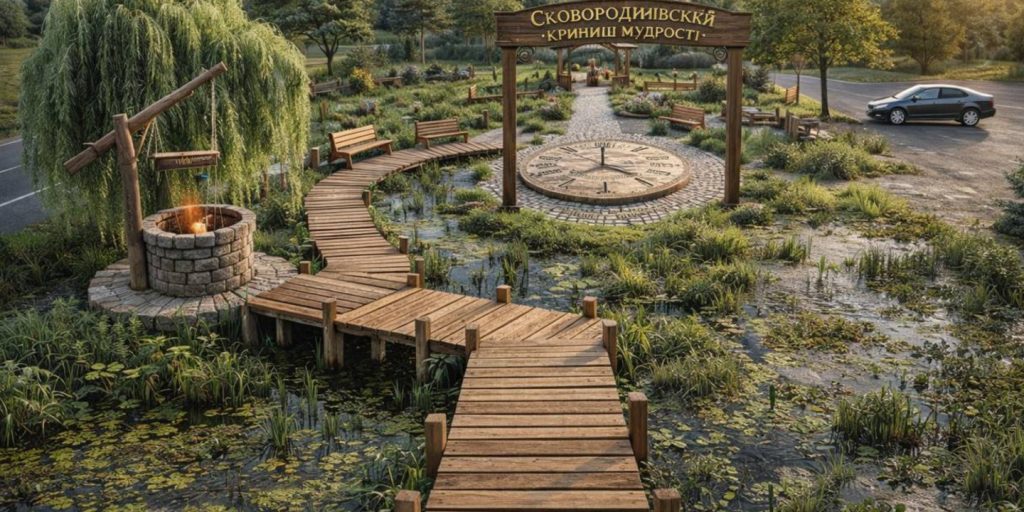 Проєкт передбачає створення туристично-культурної локації біля історичної криниці, пов’язаної з Григорієм Сковородою. Простір стане місцем відпочинку, натхнення та збереження культурної спадщини.